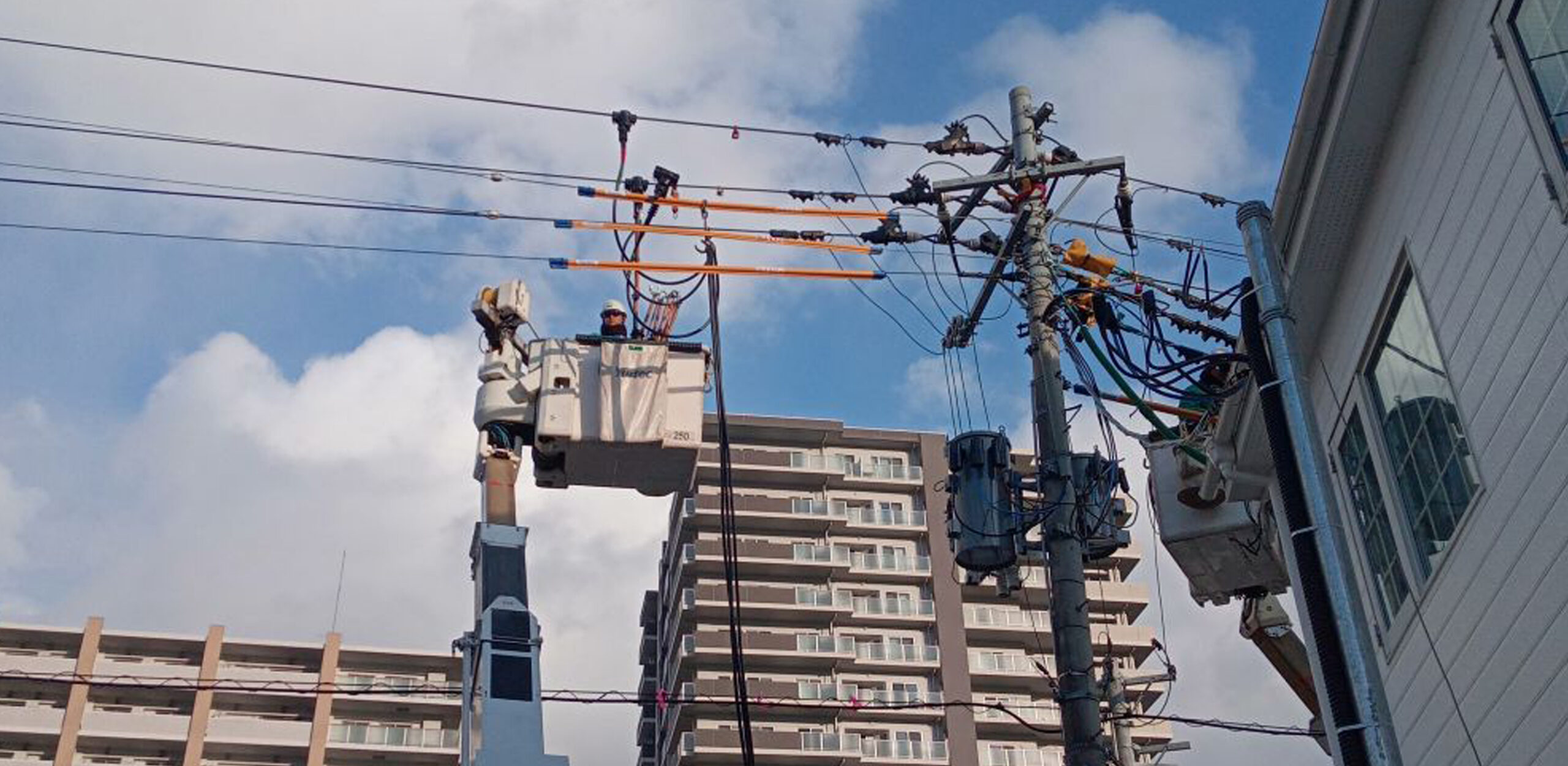 変圧器や開閉器など、電気を適切に制御するための機器を電柱に取り付ける工事です。これらの機器は、電圧の調整や電気の流れの切り替えを担う重要な設備であり、誤りのない正確な作業が求められます。私たちは、地域の配電設備が安定して運用されるよう、確実な手順で施工を行っています。